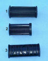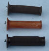 Tomaselli black soft rubber grip in the classic cross pattern (#1). Similar to the Verlicci grips but without dimples on the throttle side. Tomaselli Sport brown natural rubber (#2). A classic grip of the 70s.