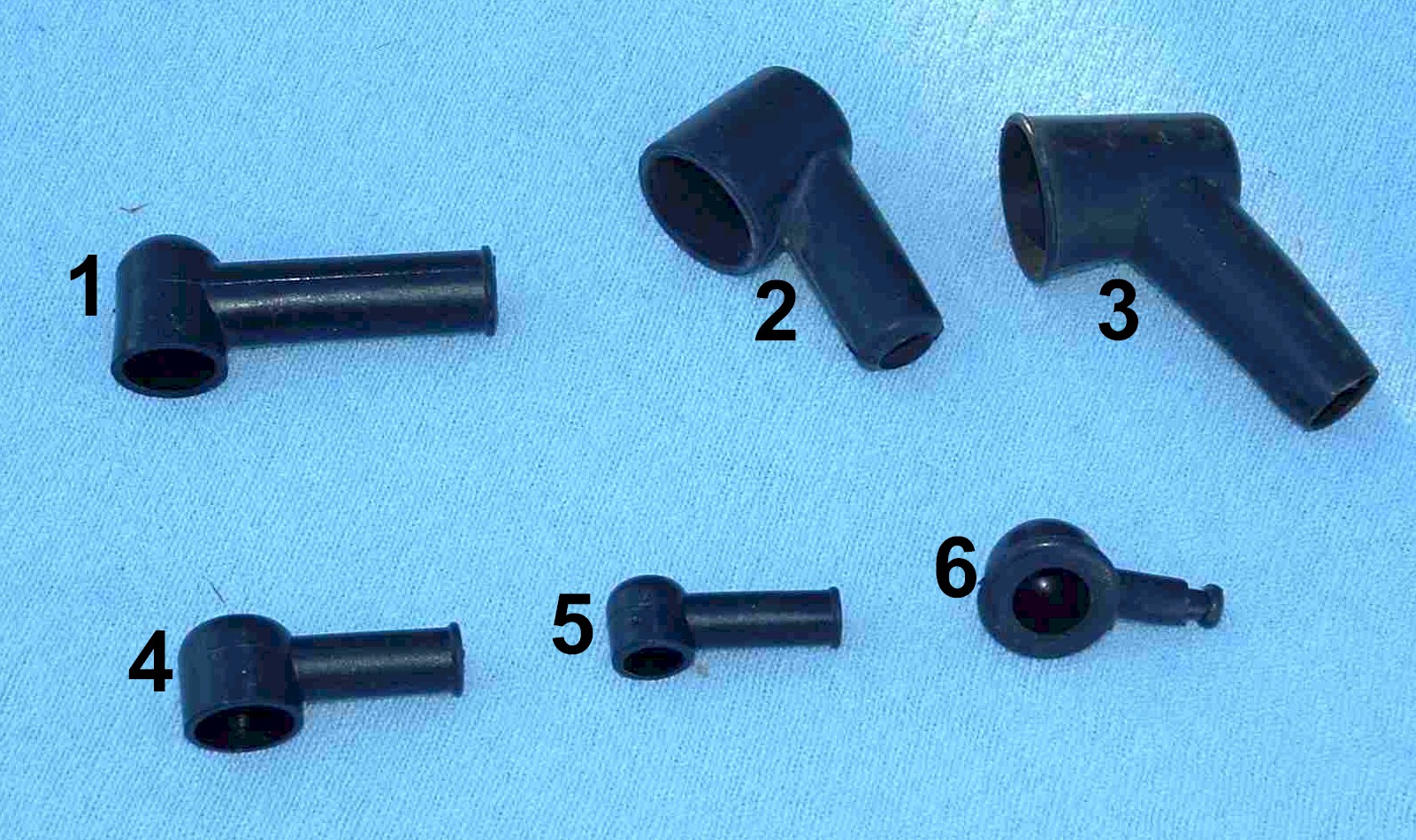 All Italia spare parts for classic italian motorcycles: Rubbers Rubber caps for electrical connections in many different sizes (#1, #4, #5, #6). Rubber cover for brake hose connections on brake master cylinders (#2, #3).